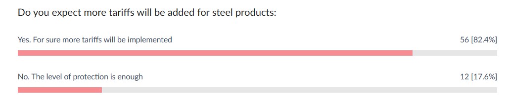 The long steel market insider said that while most supply requirements in the near term are likely to be met with domestic supply, he added that buyers requiring specific grades of steel from abroad may have to pay the expected higher tariff-inspired prices once tariffs for steel and aluminum come into play.