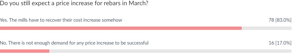 "This price reflects a more realistic market as the steel mills have tried to push these numbers higher, but there is still so much material on the ground that the price did not go up," another insider told SteelOrbis.